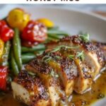 This 40-Minute Baked Honey Mustard Chicken recipe offers juicy and irresistibly flavorful boneless, skinless chicken breasts coated in a sweet and tangy honey mustard sauce, baked to perfection. It’s a simple, quick oven-baked dish perfect for weeknight dinners.