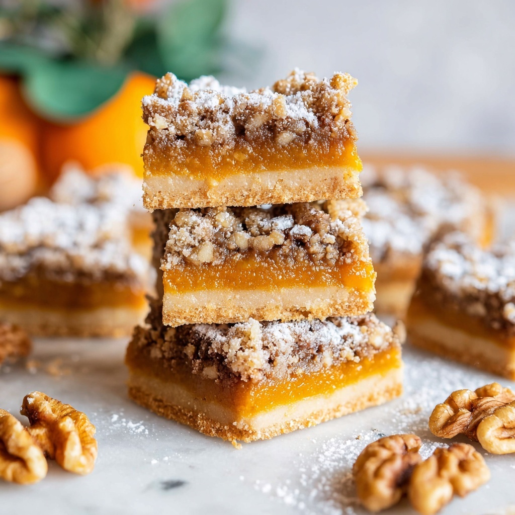 These Apricot Bars are a delightful treat featuring a buttery crust topped with a luscious apricot, walnut, and coconut filling. Softened dried apricots add a sweet and tangy flavor contrast, while a dusting of powdered sugar finishes these bars with a touch of elegance. Perfect for dessert or a midday snack, these bars combine rich textures and flavors in every bite.