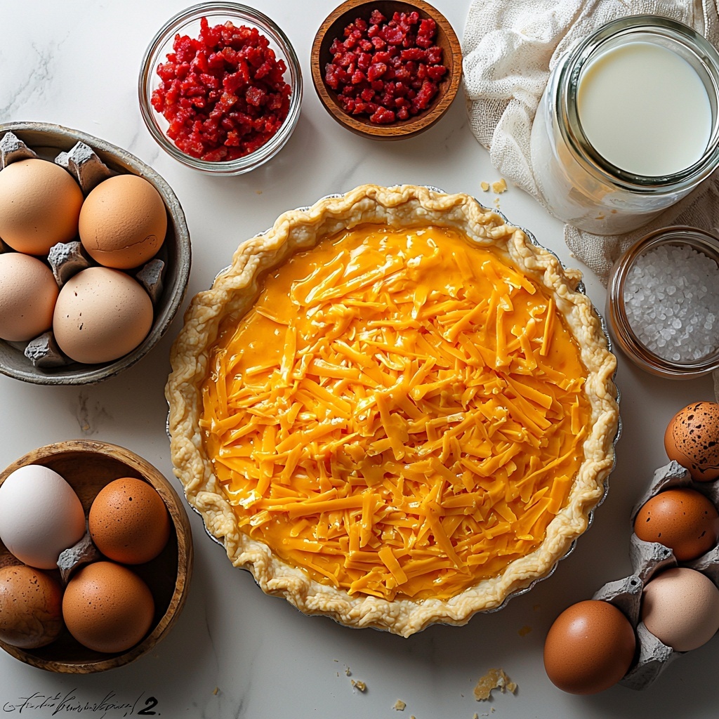 Gathering the right ingredients might sound basic, but for this Bacon and Pimento Cheese Quiche Recipe, each element plays a starring role in creating the perfect harmony of flavors and textures. From the crispy bacon to the creamy dairy components, every ingredient contributes to the ultimate quiche experience.