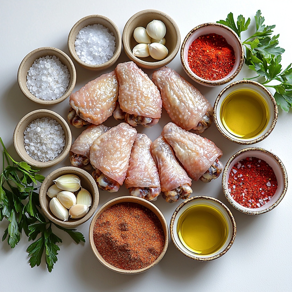 • 2 pounds chicken wings: Fresh wings with skin on, essential for crispy, juicy bites.