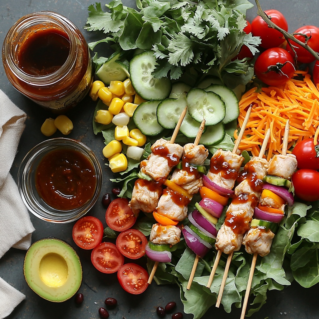This BBQ Chicken Skewer Salad combines smoky, flavorful grilled chicken with fresh, crisp salad greens and a tangy homemade dressing, perfect for a healthy and satisfying meal in just 30 minutes.