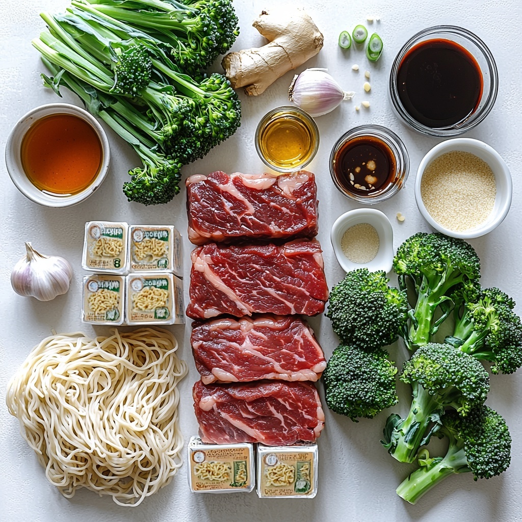 Gathering the right ingredients is the secret to nailing this Beef and Broccoli Ramen Recipe. Each component plays a crucial role, from the chewy ramen noodles to the vibrant broccoli, and the savory sauce designed to tie the whole dish together seamlessly.