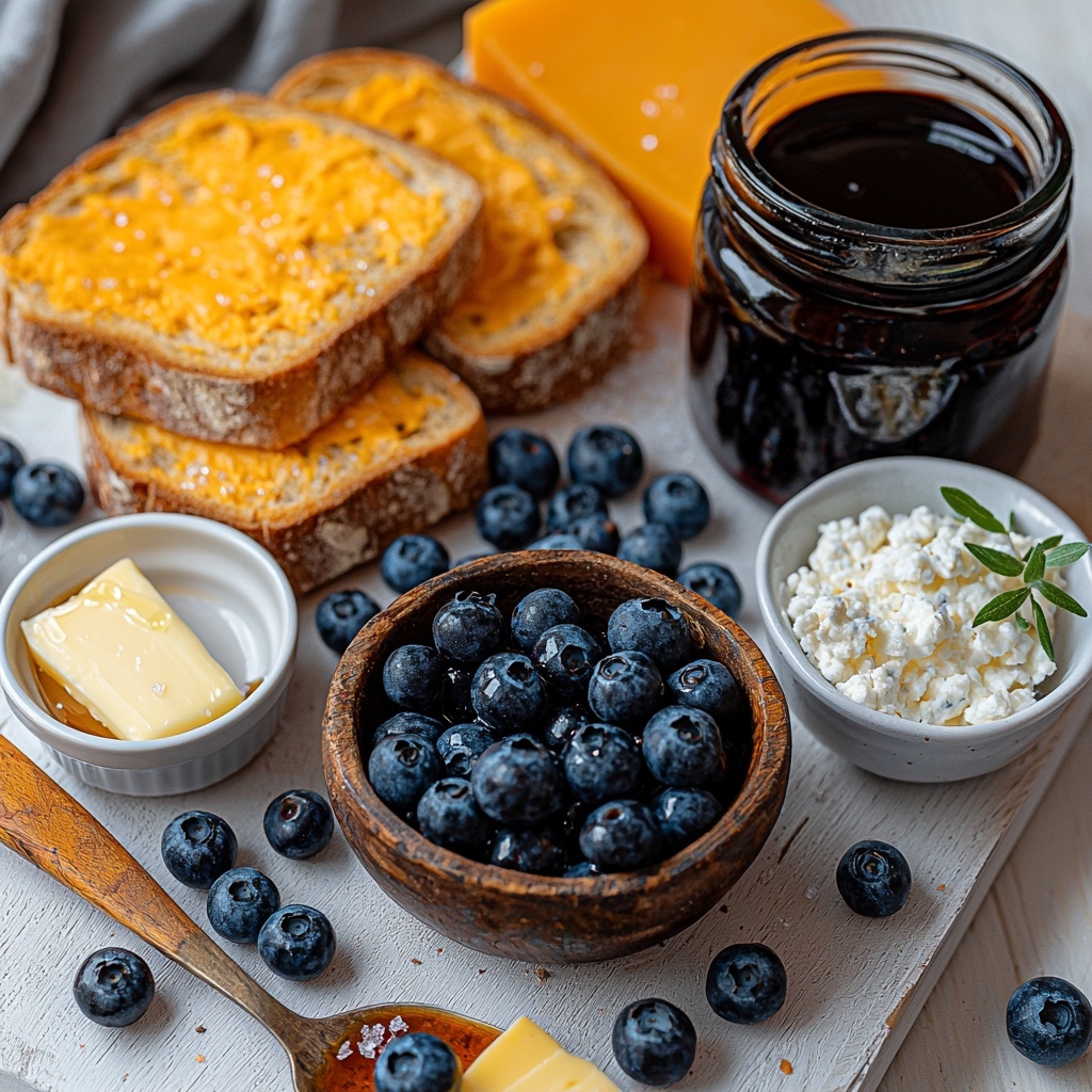 Getting this sandwich right is all about using simple, fresh ingredients that each play a vital role: sweetness, tang, crunch, and creaminess combine perfectly here. Each element contributes to the layered texture and bright flavors that make the Blueberry and Cheddar Grilled Cheese Sandwich Recipe truly memorable.