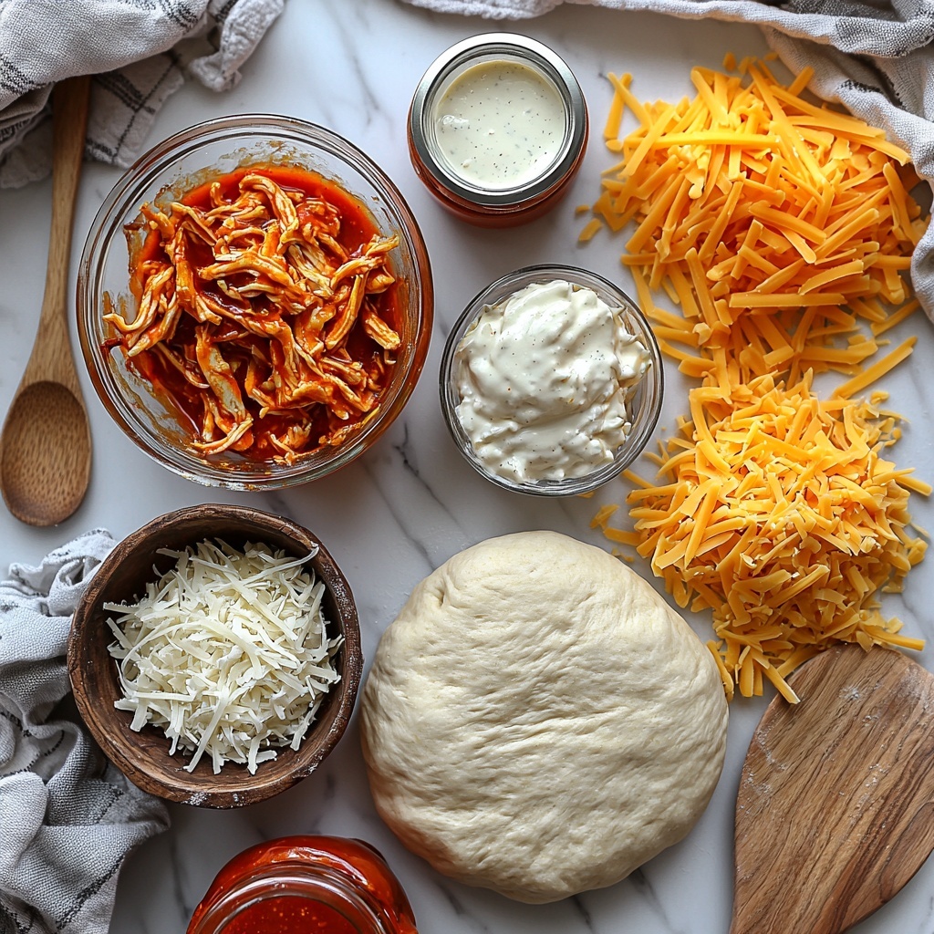 Buffalo Chicken Cheese Bake is a deliciously spicy and cheesy dish perfect for family dinners or game day. Combining tender shredded chicken tossed in tangy buffalo wing sauce with creamy ranch dressing, all layered inside a golden baked pizza dough, this casserole-style bake offers a perfect balance of heat and creaminess. The melty blend of mozzarella and cheddar cheeses provides a rich, savory finish that is sure to satisfy comfort food cravings.