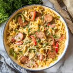 This Cajun Chicken and Sausage Pasta is a flavorful, spicy one-pot meal combining tender cubed chicken breasts, smoky Andouille sausage, colorful bell peppers, and perfectly cooked campanelle pasta. Simmered in a savory broth with white wine and a homemade Cajun seasoning blend, then finished with Parmesan cheese and cream for a rich, creamy texture. Perfect for a quick and satisfying family dinner with bold Southern-inspired flavors.