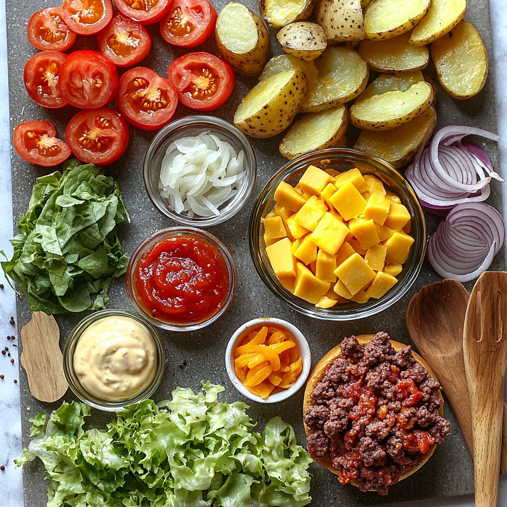 Getting this recipe right is all about a handful of simple, fresh ingredients that each play a crucial role. The blend of creamy, tangy, and savory components creates layers of flavor, while the textures—from crunchy lettuce to melty cheese—make every bite exciting. Let’s break down the essentials that make these cheeseburger bowls truly stand out.