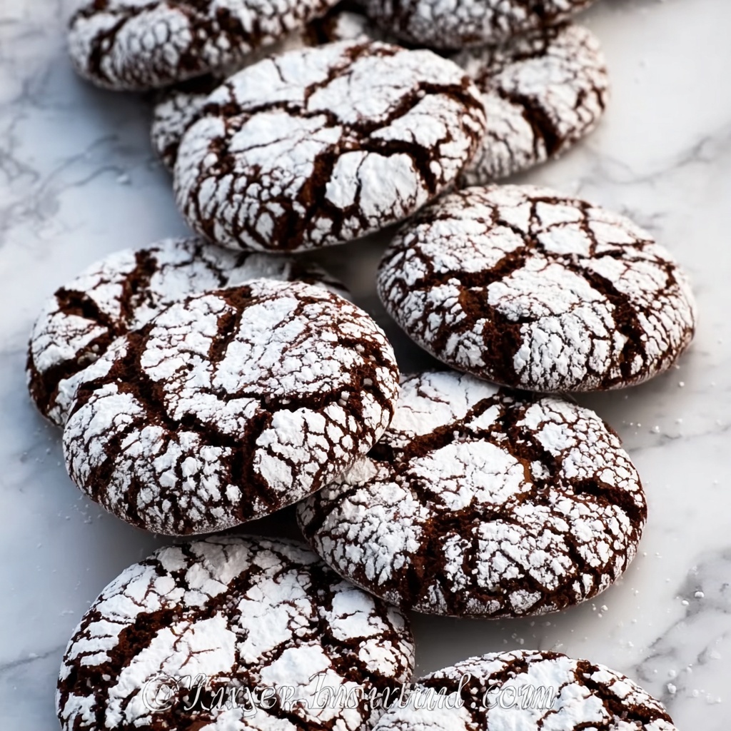 Delight in these fudgy and tender Chocolate Crinkle Cookies, featuring a crackled powdered sugar exterior and a rich chocolate center. Enhanced with a hint of Grand Marnier, these cookies are perfect for holiday gifting or any sweet craving, requiring simple ingredients and straightforward preparation.