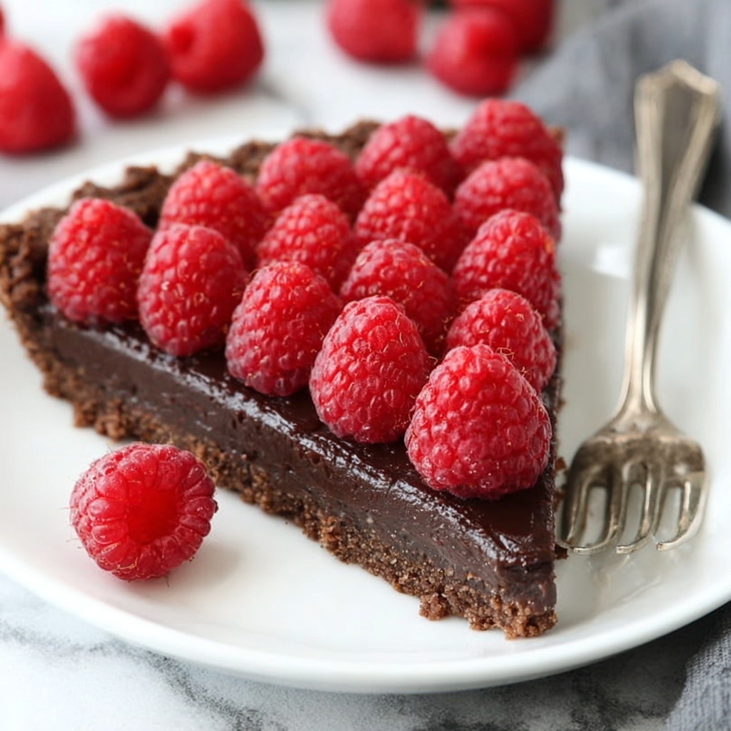 Just before serving, decorate your stunning tart with fresh raspberries arranged thoughtfully on top. Not only do they add brightness and bursts of fresh flavor, but they also give a striking presentation. Using a warm knife to slice clean pieces ensures you serve perfect portions that showcase every beautiful layer of this Chocolate Raspberry Tart Recipe.