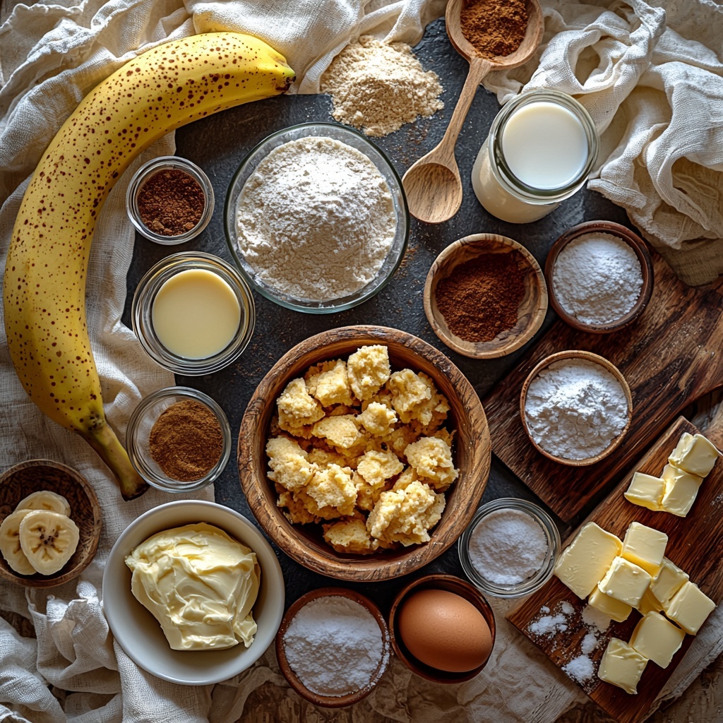 • Bananas: Ripe and mashed, they are the star ingredient giving natural sweetness, moisture, and that unmistakable banana flavor.