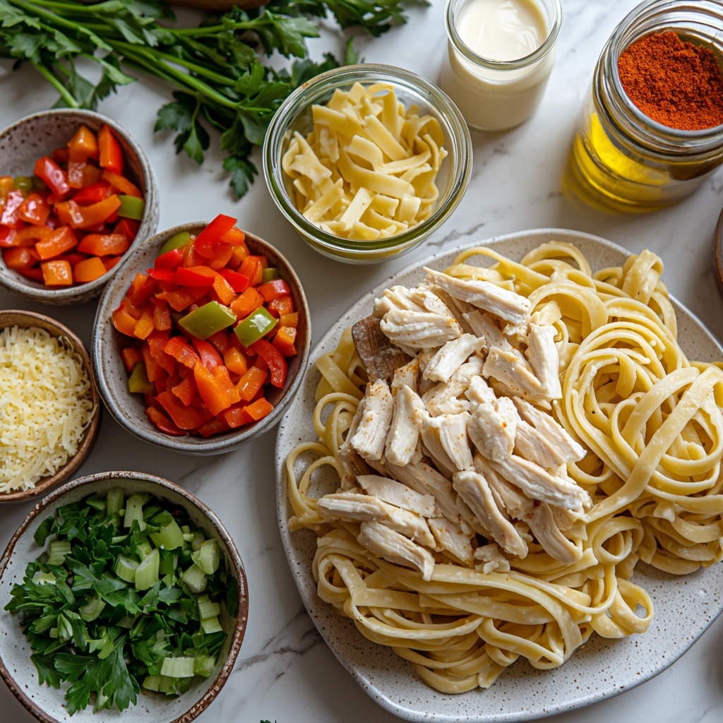 These ingredients are simple, vibrant, and essential for bringing the Creamy Cajun Chicken Pasta Recipe to life. Each one lends a special touch—whether it’s the smoky heat of the Cajun spices, the brightness of fresh peppers, or the indulgence of Parmesan cheese, everything works together in harmony.