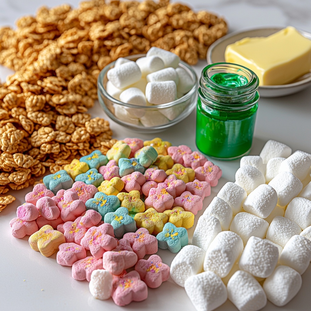 - 5 cups Lucky Charms Cereal, plus extra marshmallows for topping