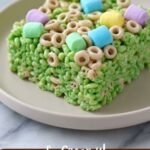 - Serve: Cut into 12 standard squares or 8 larger squares if desired, and enjoy your colorful, crunchy, and sweet Lucky Charms Rice Krispie Treats!