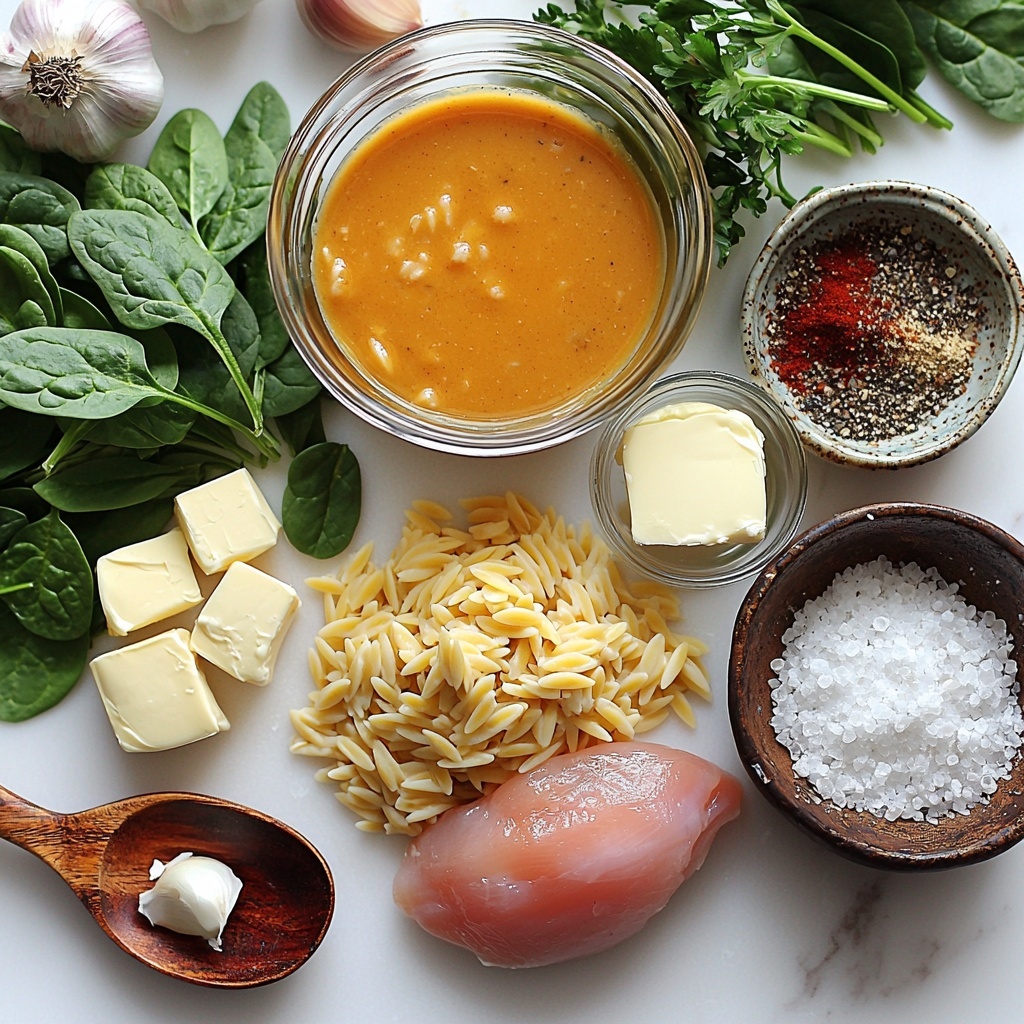 Begin by bringing a large pot of salted water to a boil and cooking the orzo pasta according to the package instructions for 9 to 11 minutes until it’s perfectly al dente. This step ensures your pasta has just the right texture—firm but tender. After cooking, drain the orzo and rinse it under cool water to stop the cooking process and keep the grains separate. Set it aside—trust me, this base is going to soak up all the creamy goodness perfectly later on.