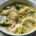 This Creamy Curried Cauliflower Noodle Soup is a comforting, flavorful dish perfect for cozy nights. Combining aromatic spices with tender cauliflower, noodles, and coconut milk, this vegan soup offers a rich, creamy texture and a subtle heat that warms you up from the inside out. Quick to prepare and packed with nutritious ingredients, it’s an ideal meal for any night of the week.