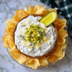 This Creamy Dill Pickle Dip is a tangy, flavorful dip perfect for parties or casual snacking. Made with a blend of Greek yogurt, cream cheese, sour cream, and chopped dill pickles, it’s enhanced with fresh dill, sharp cheddar cheese, and a kick of hot sauce. The dry ranch dressing mix adds a savory depth, making this dip irresistibly creamy and zesty. Serve chilled with chips, crackers, or bread for a crowd-pleasing appetizer.