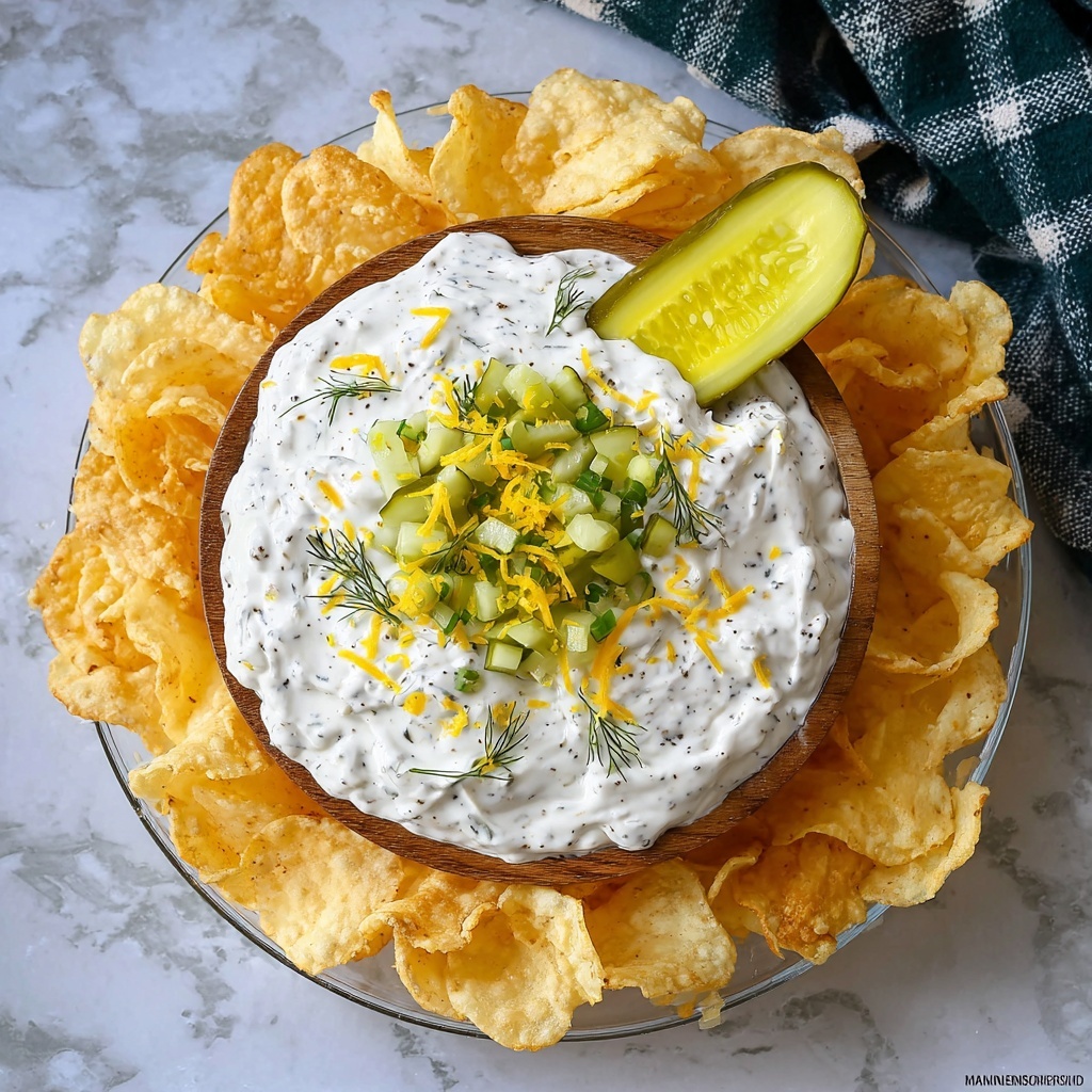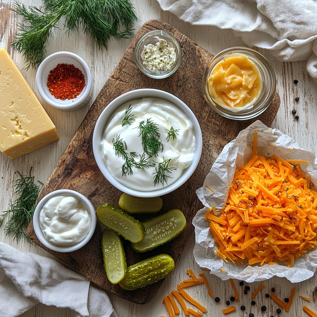This recipe calls for a handful of simple yet essential ingredients, each carefully chosen to bring out the best in the dip’s flavor, creaminess, and color. The balance of creamy dairy, crunchy pickles, and fragrant herbs truly makes this dish sing.