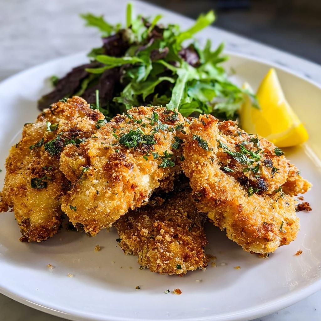 This Crispy Breaded Chicken with Lemon and Parmesan Recipe pairs wonderfully with light, fresh sides like a crisp garden salad or steamed vegetables. For heartier meals, creamy mashed potatoes, garlic butter asparagus, or even a delicate risotto bring out the best flavors. The lemony notes in the chicken brighten heavier sides, balancing the plate.
