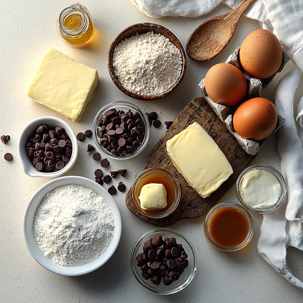 These ingredients are simple staples that combine to create the perfect harmony of texture, sweetness, and rich flavor in your Deep Dish Chocolate Chip Cookie Pie with Caramel Drizzle Recipe. Each one plays a crucial role, from the buttery dough to the luscious chocolate chips and that silky caramel finish.
