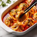 This Easy One-Pan Dumplings recipe combines a flavorful coconut red curry sauce with juicy dumplings baked to golden perfection. Ready in just 25 minutes, it’s a simple and delicious dish that comes together effortlessly in one baking dish, making cleanup a breeze. Garnished with green onions, chili oil crunch, cilantro, and sesame seeds, this dish offers a delightful blend of creamy, spicy, and savory flavors perfect for a quick dinner.