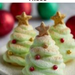 - Decorate: Sprinkle holiday sprinkles or edible pearls over the meringue and place an edible gold star on top of each tree to add festive charm.