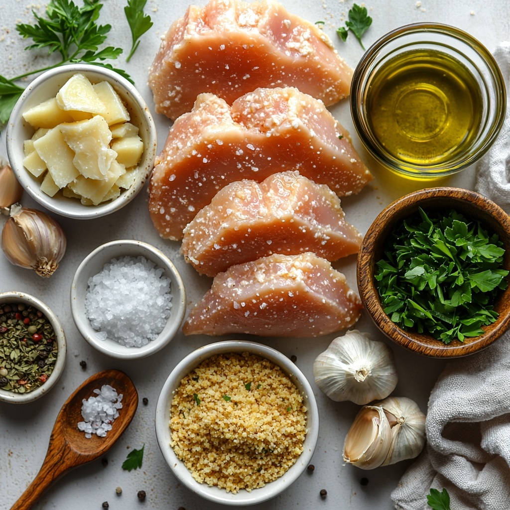 These ingredients are wonderfully simple but crucial to achieving that irresistible Garlic Parmesan Chicken Recipe flavor and texture. Each component plays a key role, from the creamy Parmesan that adds depth, to the fresh garlic that wakes up your taste buds, and the herbs that add subtle complexity.