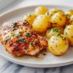 This garlic Parmesan chicken and potatoes recipe is hearty enough on its own, but light sides like a crisp green salad, steamed asparagus, or roasted Brussels sprouts make wonderful companions. These fresh, vibrant veggies balance the richness perfectly.