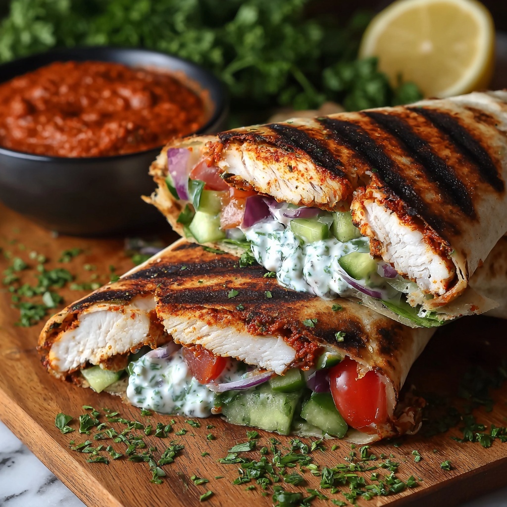 How to Make Greek Chicken Wraps with Roasted Red Pepper Sauce Recipe