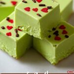This festive Grinch Fudge is a delightful holiday treat featuring creamy white chocolate fudge colored bright green with gel food coloring and topped with red heart sprinkles for a whimsical Grinch-inspired look. Perfect for holiday parties, this fudge combines smooth white chocolate, marshmallow cream, and a rich sugar base to create a sweet, rich dessert that sets beautifully after chilling.