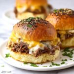 These Hawaiian Roast Beef Sliders combine sweet King’s Hawaiian rolls with savory roast beef and melted American cheese, topped with a flavorful garlic mayo and a buttery brown sugar glaze. Perfect for parties or a comforting snack, these sliders are baked to golden perfection and garnished with poppy seeds and Parmesan for an extra burst of flavor.