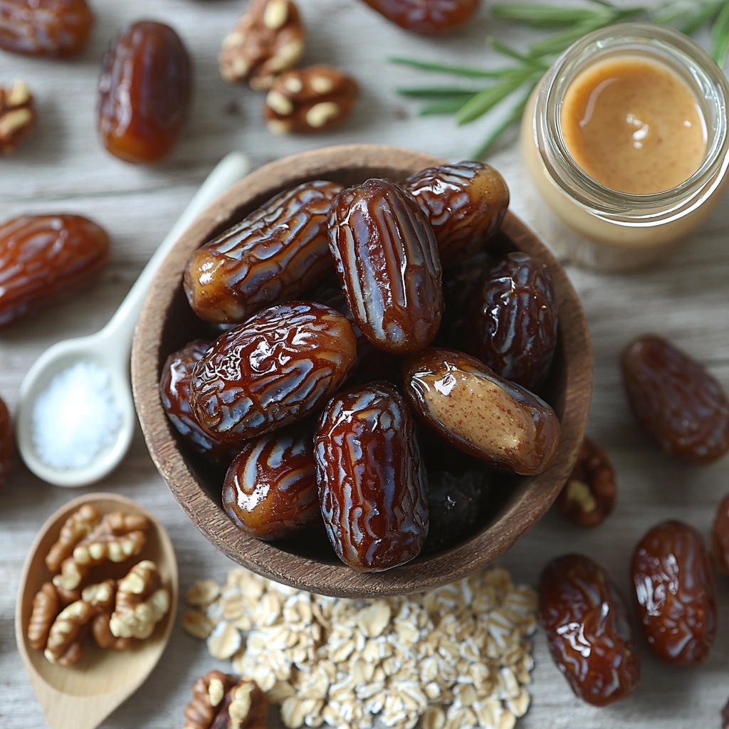 - 1 cup dates, pitted: The natural sweetener that brings sticky richness and chewy texture without any refined sugar.