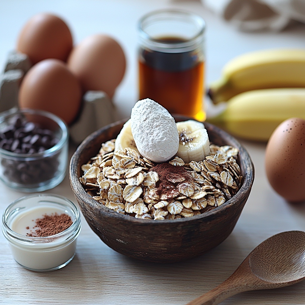 This High-Protein Banana Bread Baked Oatmeal Recipe comes together with simple, accessible ingredients that each play a key role in creating its rich texture, sweet warmth, and satisfying protein content. Let’s take a look at what you’ll need: