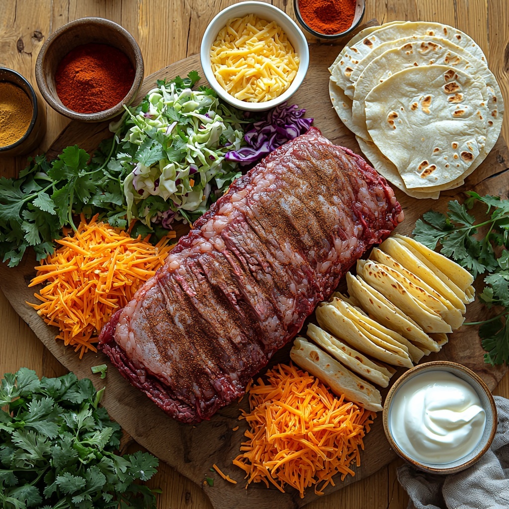 Start by trimming any excess fat from your boneless beef brisket; this helps avoid greasy tacos and lets the spices shine. Season it generously with salt, pepper, cumin, and paprika — these spices work together to create a hearty, aromatic base flavor that perfectly complements the rich beef.