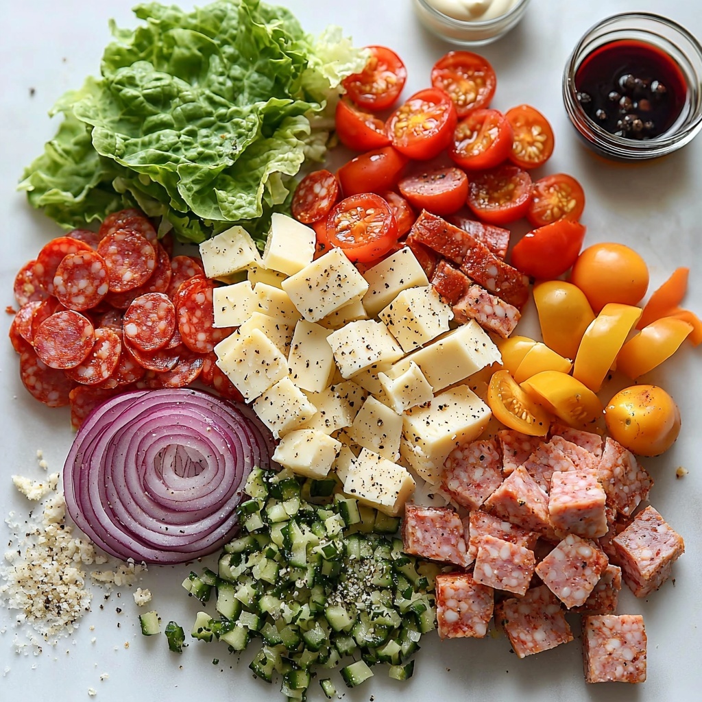 If you love the bold flavors of classic Italian sandwiches, but want something light, fresh, and perfect for a quick meal or a gathering, this Italian Grinder Salad Recipe will become your new go-to. It captures all the delicious ingredients of a traditional Italian grinder—salami, pepperoni, provolone cheese, and more—layered on a crisp bed of iceberg lettuce and dressed in a zesty, creamy dressing that ties everything together beautifully. This salad is vibrant, hearty, and so easy to make that it will soon feel like an old favorite every time you prepare it.