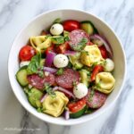 A refreshing and flavorful Italian Tortellini Pasta Salad combining cheese tortellini, fresh vegetables, mozzarella, salami, and a zesty Italian dressing. Perfectly chilled and tossed with Parmesan and basil, this salad is ideal for a light lunch or a vibrant side dish at gatherings.