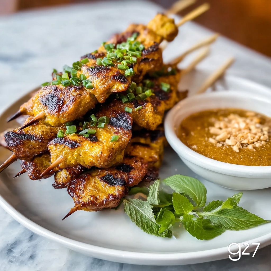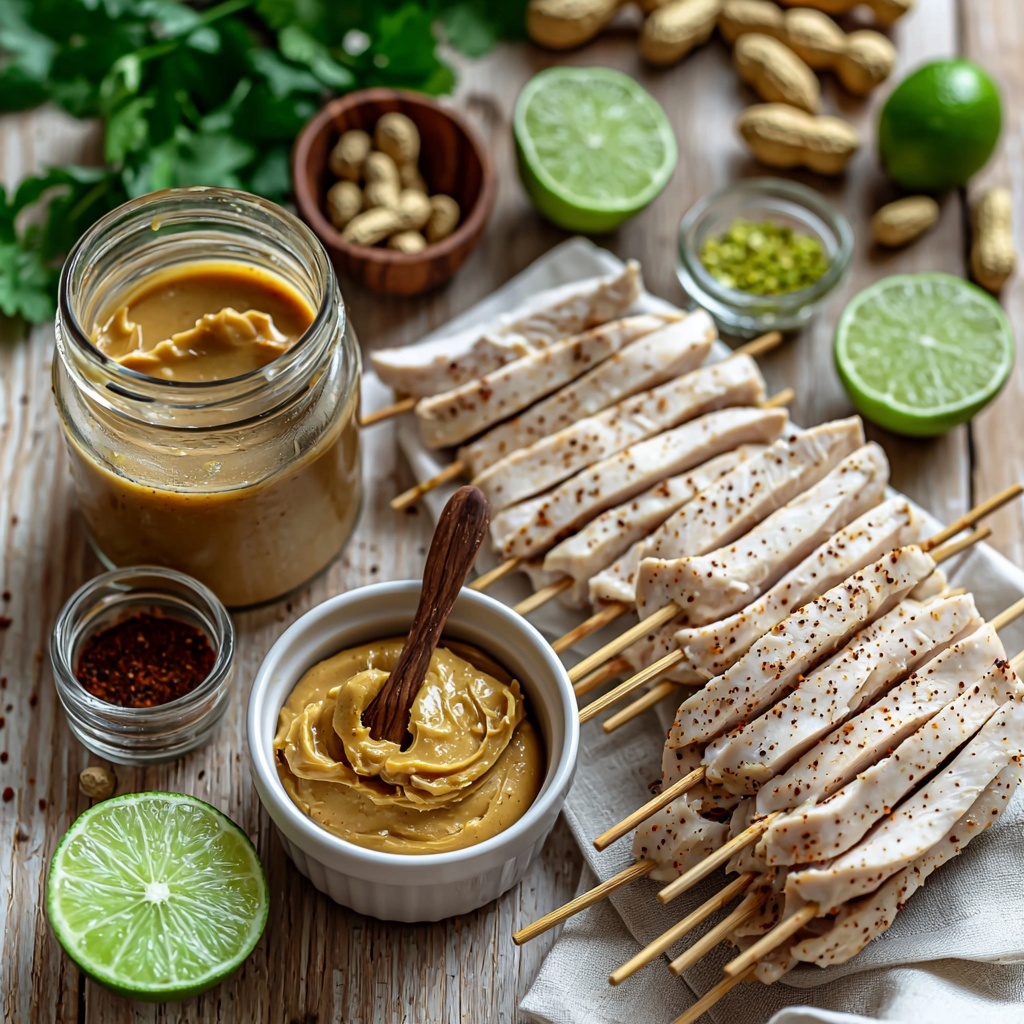 For a fun twist, serve the chicken skewers over a bed of julienned veggies or spiralized zucchini noodles, drizzling the peanut sauce over the top for a vibrant, colorful plate. You can also turn these into lettuce wraps for a handheld treat, making the experience interactive and visually inviting.