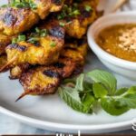 - Serve: Serve the grilled chicken skewers hot alongside the creamy peanut dipping sauce.