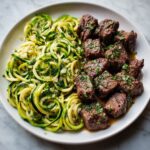 Juicy and buttery steak bites paired with tender zucchini noodles, this keto-friendly, low-carb dinner is quick to prepare, bursting with garlic and herb flavors, and perfect for a satisfying weeknight meal.