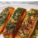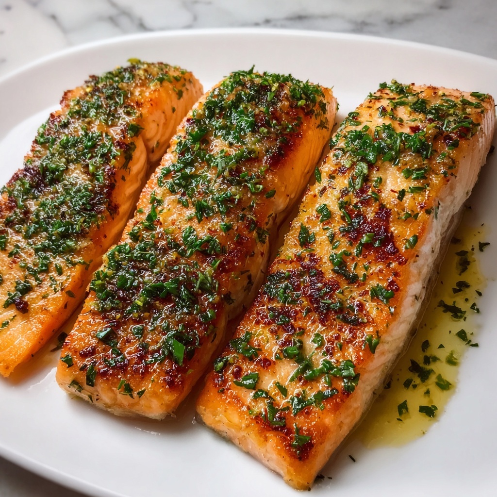 Once out of the oven, sprinkle fresh parsley over the salmon for a burst of color and herbal freshness. This simple garnish brings the whole dish to life and makes it look as amazing as it tastes.