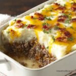 This Mashed Potato Meatloaf Casserole is a comforting, hearty dish featuring a savory ground beef meatloaf base topped with creamy mashed potatoes, crispy bacon bits, and melted cheddar cheese. Perfect for a family dinner, it combines the classic flavors of meatloaf and mashed potatoes in one easy casserole.