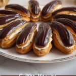 Since the éclairs are filled with a delicate cream, reheating is not recommended, as it may melt the filling and soften the crisp pastry. Instead, serve them chilled or bring them briefly to room temperature for the best texture.