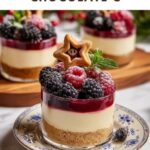 Delight in these No-Bake White Chocolate Cheesecakes with Mulled Apple Vinegar Fruit, combining a rich, creamy cheesecake filling with a crisp gingerbread shortbread crust and a tangy, spiced berry topping. Perfectly chilled and bursting with festive flavors, this dessert is ideal for any occasion that calls for a sophisticated yet simple sweet treat.