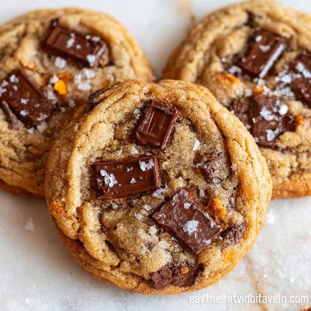 - Cool & Garnish: Allow the cookies to cool on the baking sheet for a few minutes before transferring them to a wire rack. Optionally sprinkle a pinch of sea salt over the tops to enhance the chocolate and orange flavors before serving.