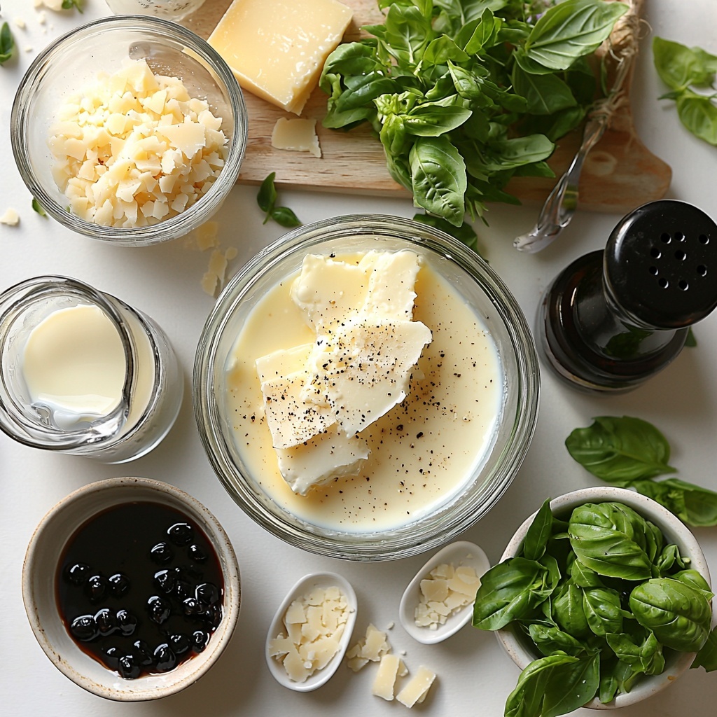 The magic of this Parmesan Panna Cotta with Balsamic Caviar Pearls Recipe comes from a handful of carefully chosen ingredients that bring balance and depth. Each item plays an essential role, whether it’s lending creaminess, sharp umami flavor, or that spectacular visual pop from the balsamic pearls.
