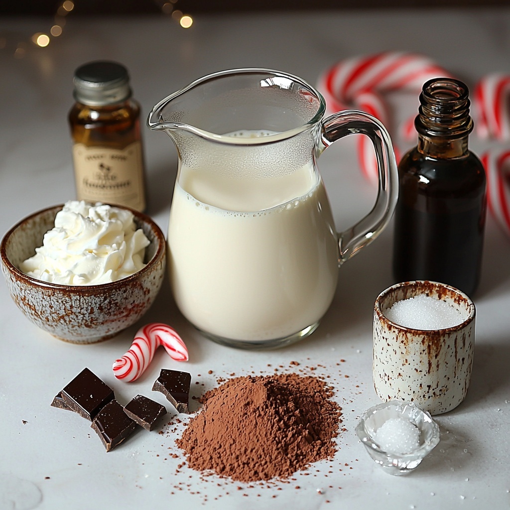 This Peppermint Mocha Recipe uses simple, everyday ingredients that come together beautifully to deliver a creamy, flavorful experience. Each one plays a special role, from the creaminess of the whole milk to the brightness of the mint.