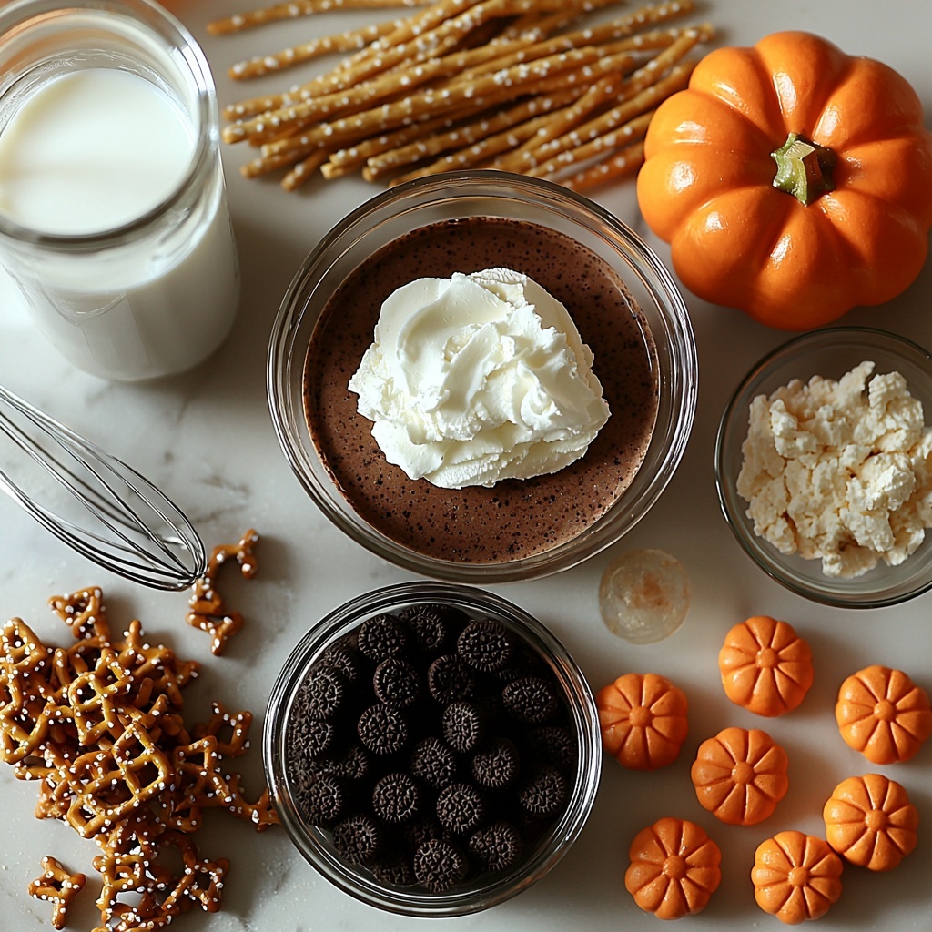 • 4 sticks pretzel sticks: These mimic pumpkin stems, adding a crunchy, salty contrast to the sweet layers.