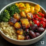 This Roasted Veggie Quinoa Bowl is a nutritious and delicious plant-based meal packed with vibrant roasted vegetables, fluffy quinoa, and a flavorful blend of spices. Perfect for a wholesome lunch or dinner, this bowl is easy to prepare and customizable to your favorite veggies and protein sources. Inspired by Mediterranean flavors, it offers a balanced combination of protein, fiber, and healthy fats, making it a perfect choice for a vegan and gluten-free diet.