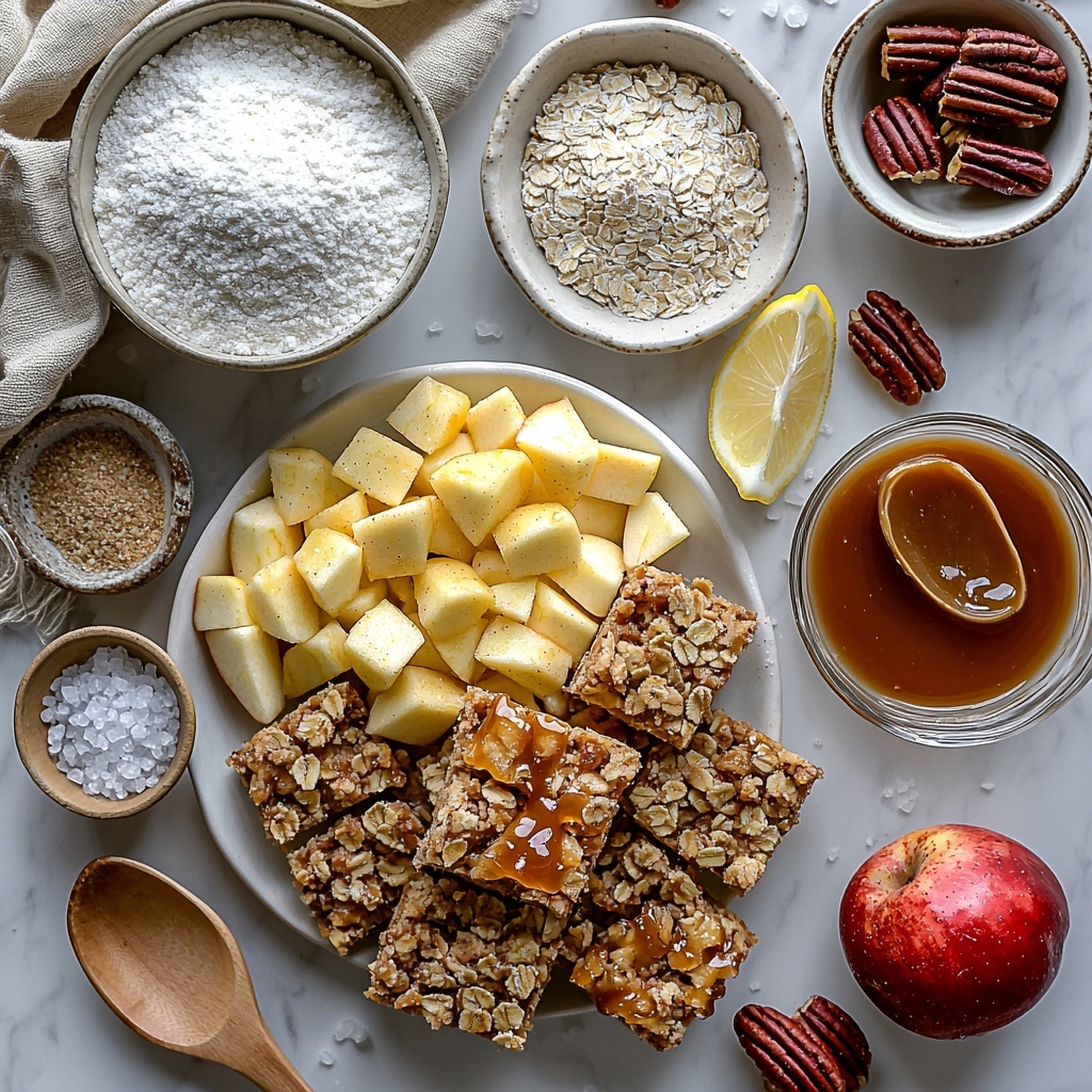 This recipe uses a handful of simple, wholesome ingredients that come together beautifully to create depth of flavor and texture. Each item plays a vital role—from the crumbly oat base to the juicy, spiced apples and rich caramel finish—giving you a dessert that feels as special as it tastes.