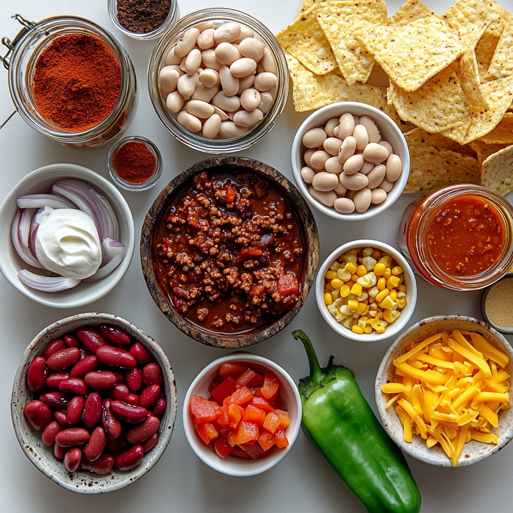 - Corn chips (optional topping): Crunchy texture that’s fun to scoop or sprinkle on top.