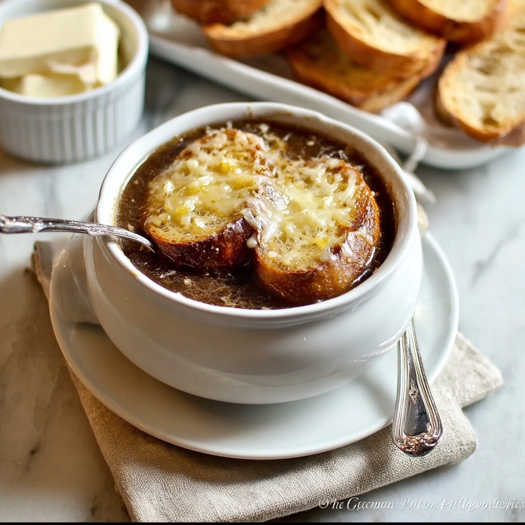 For a rustic look, serve the soup in individual cast-iron skillets or mini cocottes, letting guests enjoy their own bubbling cheesy crust. Alternatively, you can make it a hearty main course by adding a side of crusty bread or a grilled cheese sandwich, perfect for dipping and soaking up every last drop.