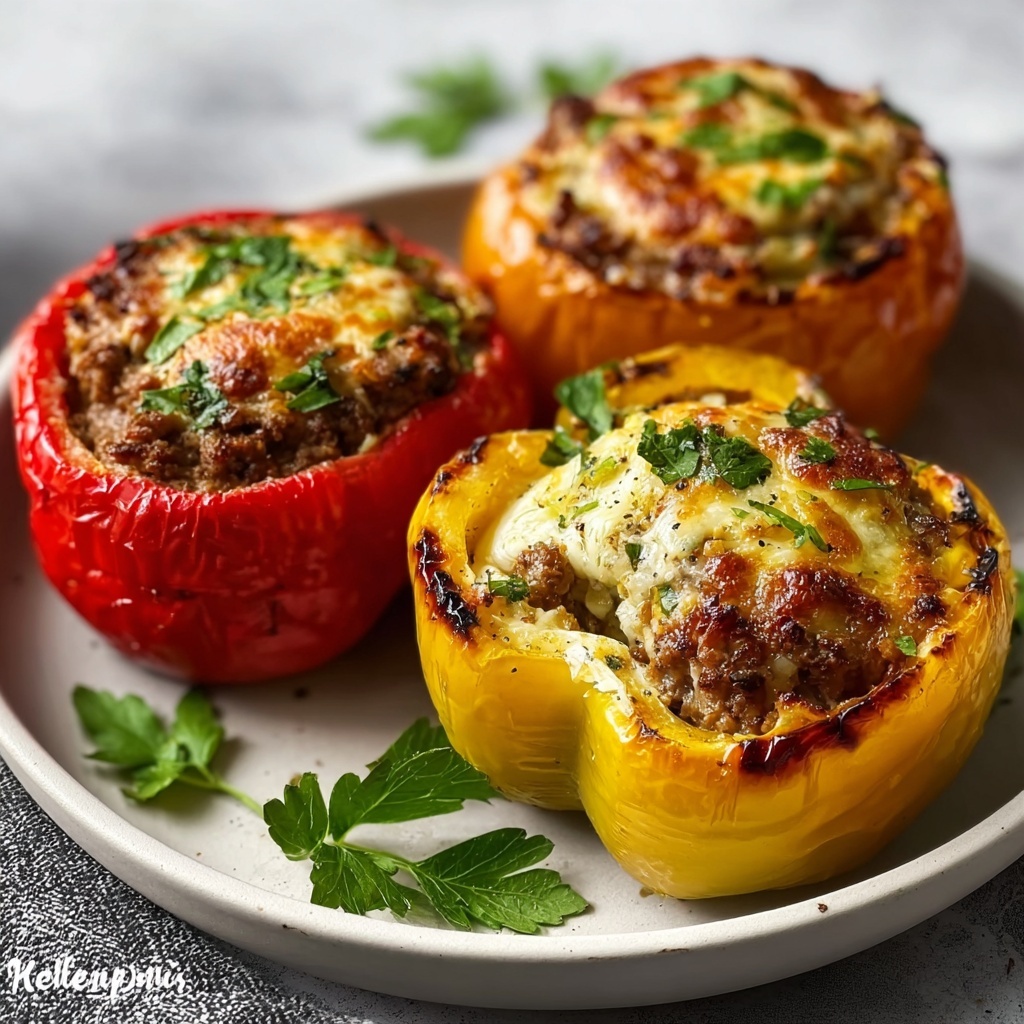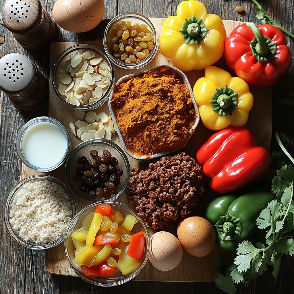 Experience the unique flavors of South Africa with these delicious Bobotie-Stuffed Peppers. This recipe blends savory spiced ground beef or lamb with fragrant curry, turmeric, and cinnamon, combined with a creamy milk-egg mixture and studded with sweet raisins and crunchy almonds. Baked to perfection in bell peppers, this dish is a comforting and flavorful meal perfect for any occasion.